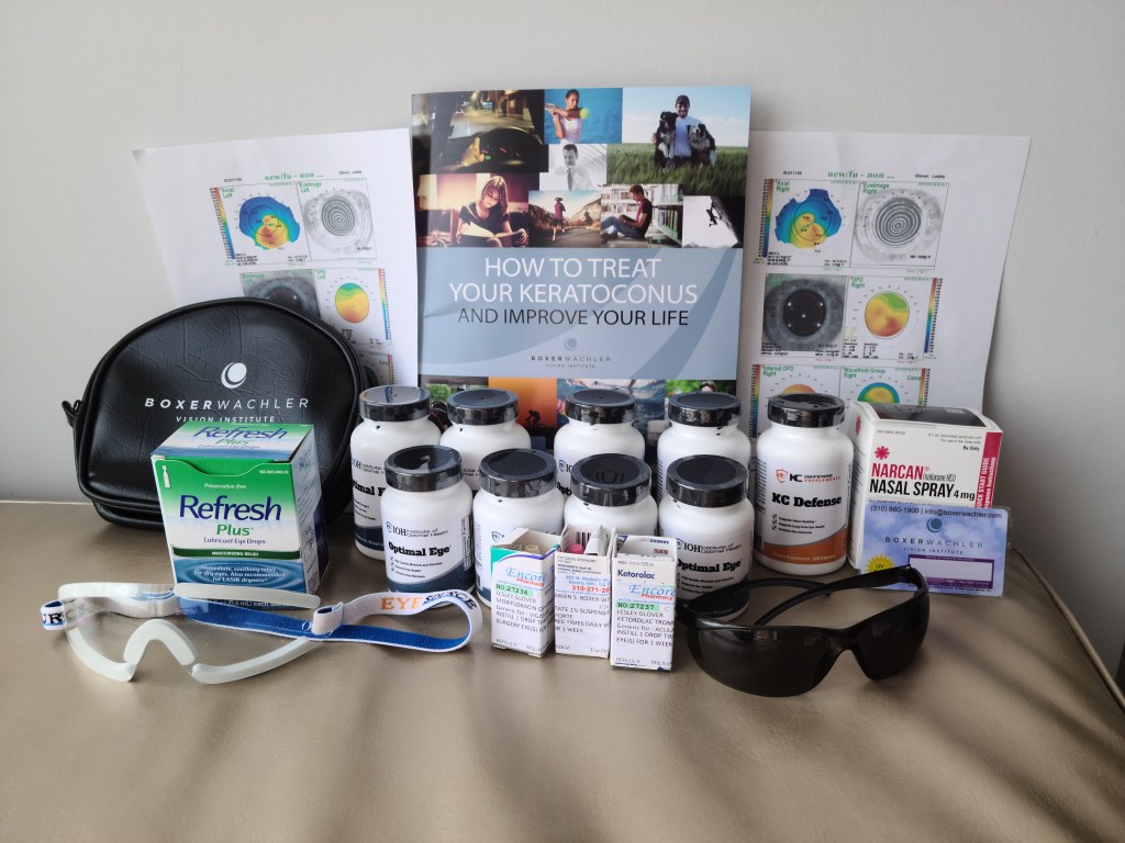 To say the procedure was confronting is an understatement, including a dramatic allergic reaction to the opioid painkillers I was given later in the day. Dr. Brian and his staff looked after me expertly. I had the intacs inserted into my eyes first—which, I might point out, you are completely awake for. (Luckily, I had told them not to give me strong painkillers ahead of the procedure, so my bad reaction to opioids only happened after my surgery, not during.) While the procedure itself was uncomfortable, it was also fascinating, because I could actually see and feel most of what he was doing. It kind of felt like I was looking through a microscope to watch my own surgery, Dr. Brian’s tiny implements were in such close quarters visually. I could even see the start of the insertion of the implants happening out of the seeming “edge” of my eyes.