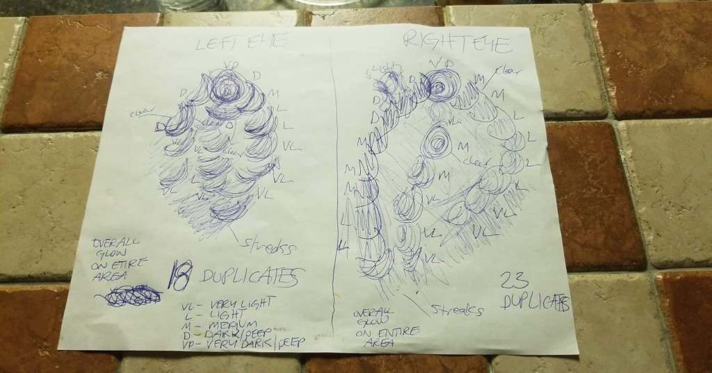 I greatly appreciated the fact that Dr. Brian fashioned an unexpectedly tailor-made procedure at short notice to try and help me regain some sight. I figured any visual gain from a partial implant, even if only tiny, was worth the expense. I also reckoned that my fundraiser donators would agree. He showed me a rough digital image of how he would position my implants—making an interesting observation that both my Keratoconus-distorted corneas were oddly mirrored in their topographical aberrations—and we formulated a plan for my surgery the next day.